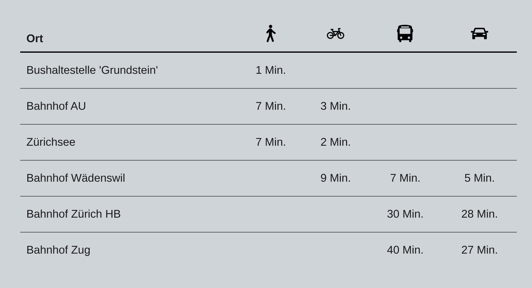 Die Wohnung befindet sich an der Seestrasse 291B und überzeugt durch ihre ideale Lage: die Bushaltestelle 'Grundstein' ist nur eine Minute zu Fuß entfernt, der Supermarkt Coop ist in nur zwei Minuten erreichbar und der Bahnhof Au liegt lediglich acht Gehminuten entfernt.